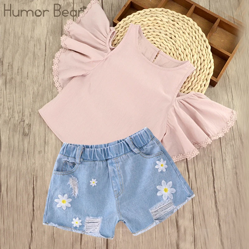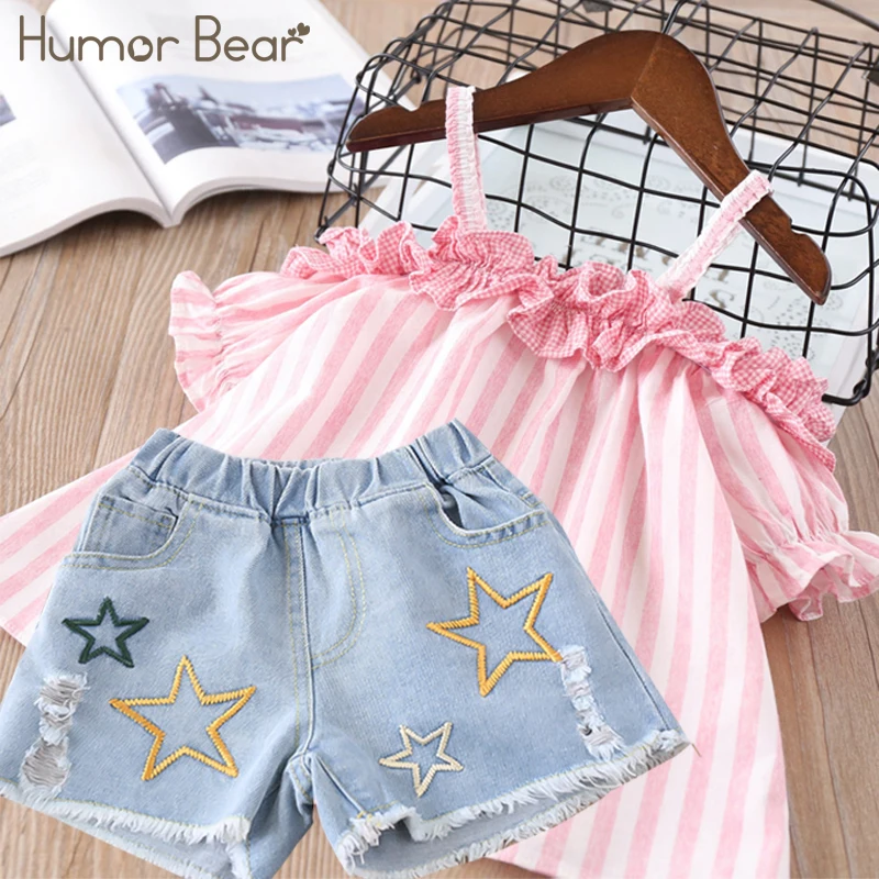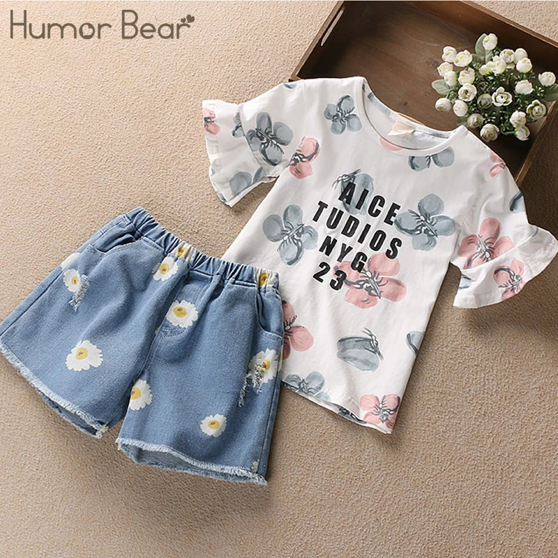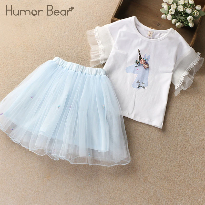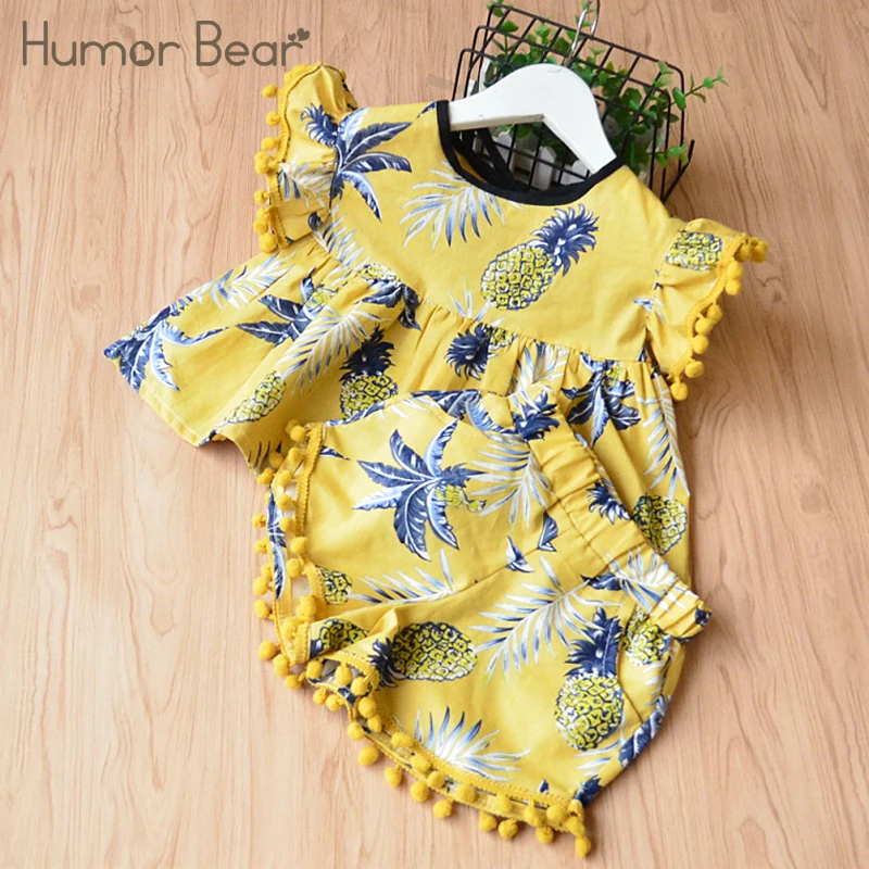 Department Name: Children; Item Type: Sets; Collar: O-Neck; Sleeve Style: Regular; Material: Lycra,Cotton; Style: Fashion; Pattern Type: Cartoon; Fit: Fits true to size, take your normal size; Closure Type: Pullover; Gender: Girls; Sleeve Length(cm): Short; Outerwear Type: Coat; Model Number: BTZ167; Brand Name: Humor Bear;